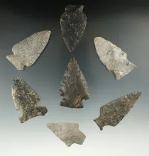 Excellent set of six Triangle points found in New York, largest is 1 13/16". |