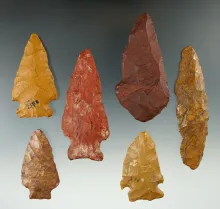 Group of six Jasper points and Knives found in New York, largest is 3 3/16". |