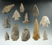 Group of 12 assorted points and Knives found in New York, largest is 3 1/4". |