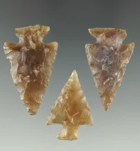 Set of three Knife River Pelican Lake Points, McLean Co., North Dakota. Largest is 1 1/4". |