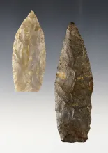 Pair of Ohio Paleo Lanceolate Points. One is marked "Akron". Both are Ex. William Tiell. |