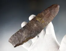 Large and well flaked 6 9/16" Ohio Paleo Knife made from Coshocton Flint. OHIO 375.00