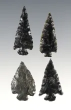 Set of four nice obsidian points in good condition found in Oregon. Largest is 1 7/16". |