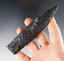 Very nice 3 1/4" Paleo Haskett made from beautiful semi-translucent Obsidian. Oregon. |
