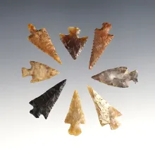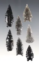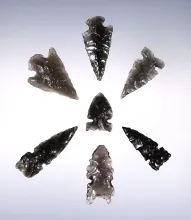 Nice set of 7 assorted arrowheads made from Obsidian. Found in Oregon. Largest is 1 1/8". |