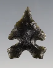 15/16" beautifully pin stem point. Excellent flaking. Found in southern Oregon. |