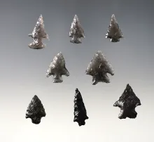 Set of 8 assorted Obsidian Points found in Oregon. Largest is 1". Ex. Wilke Museum. |