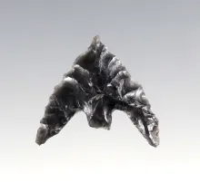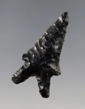 Deeply Bifurcated 1 1/2" Obsidian Point found in Lake Co., Oregon in the 1950's. |