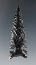 2 1/16" Cornernotch made from obsidian with exceptional serrations. Recovered in Oregon. |