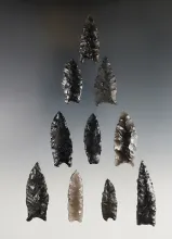 Set of 10 well made Obsidian Points - California & Oregon. Largest is 3 5/16". |