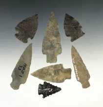 Set of 7 Pennsylvania Jasper points. Most are in good condition. The largest is 4 1/2". |