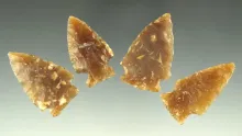 Set of four Knife River Flint arrowheads found in the Dakotas, largest is 1 5/16". |
