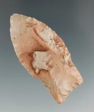 2 1/4" Knife River Flint Dalton variant with restoration to one lobe and lower part of edge. SD. |