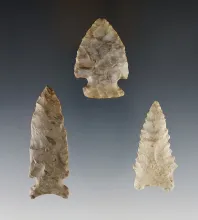 Set of 3 nicely made points. Madison Co., Ohio and Stewart Co., Tennessee. Largest is 2 5/16". |