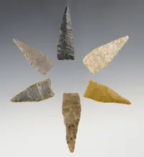 Set of 6 fine Triangle Points found in the Kentucky/Tennessee area. The largest is 1 15/16". |