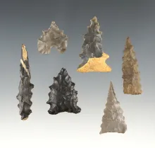 Set of 6 nicely serrated points found in Tennessee/Kentucky. The largest is 2". TENNESSEE 40.00