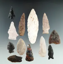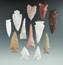 Group of 12 assorted arrowheads found in Utah, largest is 1 9/16". |