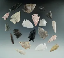 Group of 20 assorted arrowheads and Knives found in Utah, largest is 1 5/8". |