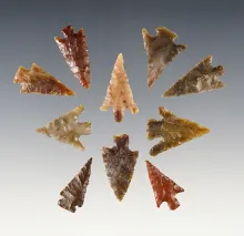 Set of 10 fine Gempoints found in the Washington/Oregon area. Ex. Gene Favell. The largest is 1". |