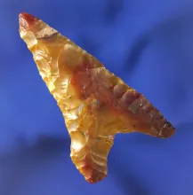 Incredible material on this 1 7/8" agate Snake River Dart Point found by Kaye Don Bruce -Washington |