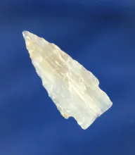 Very thin 1 3/16" Stemmed arrowhead made from beautifully translucent Agatized Wood |