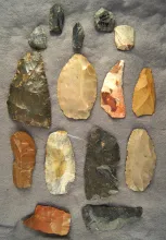 Group of 13 Assorted Paleo Tools found in Ohio, largest is 3 3/8". |