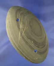 5 7/16" Ovoid Gorget made from Green & Black Banded Slate. Found in Van Wert Co., Ohio. |