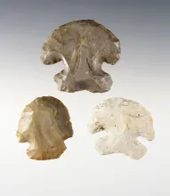 Set of 3 fine Thebes Hafted Scrapers found in Ohio. The largest is 2" wide. |