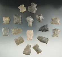 Group of 15 scrapers and one point found at the Fox Field site in Mason County Kentucky. |