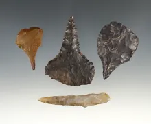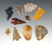 Set of 10 assorted points and tools found in Umatilla Oregon. The largest is 1 3/8". |