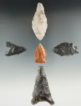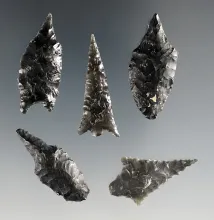 Set of 5 assorted Obsidian Arrowheads and Perforators found near Ft. Rock, Oregon. |