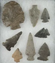 Set of eight flaked artifacts found near the Upper Susquehanna in Otsego County NY. |