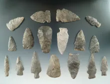 Group of 17 archaic points and scrapers found near the upper Cisco Honda, at Sago County NY. |