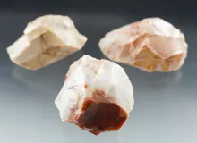 Set of three colorful Flint Ridge flint Hopewell cores found in Licking Co., Ohio. Largest is 2". |