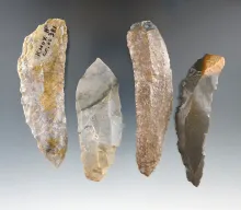 Set of four Bladelets and Uniface Knives found in Knox Co.,Ohio. Largest is 3 1/2". |