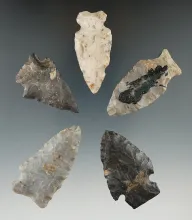 Set of five assorted Flint artifacts, largest is 2 3/16". Jefferson Township, Richland Co., Ohio . |