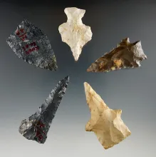 Set of five assorted points and drills found in Ohio, largest is 2". |