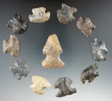 Group of 11 Hafted Scrapers found in Ohio, largest is 1 3/4". |