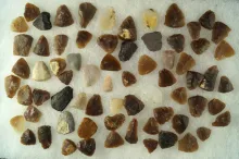 Group of assorted arrowheads and scrapers found in the Dakotas, largest is 1 5/8". |
