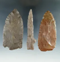 Set of three well patinated Texas Flint artifacts, largest is 2 1/2". |