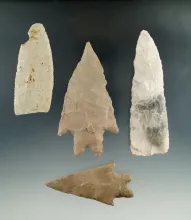 Nice set of four well-crafted flaked artifacts found in Texas, largest is 3 3/4". |