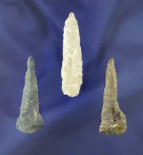 Set of three Flint Drills found in Knox Co., Ohio, largest is 2 3/8". |