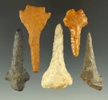 Nice group of five Drills found in the Great Basin area, largest is 2 5/16". 32.00