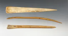 Set of 3 nice Bone Awls found at the Fox field Site in Mason Co., Kentucky. Largest is 7 3/16". |