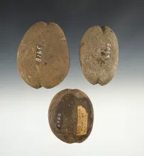 Set of 3 Grooved Weights including one found at Fairfield, largest is 3 1/4". |