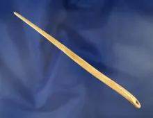 6 11/16" drilled Hairpin found in Kentucky made from nicely polished bone. Bennett COA. |