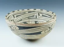 Excellent thin bowl Pottery Vessel that measures 4 1/8" x 2 1/4" tall. Well patinated with nice designs. |