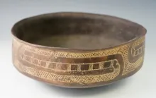 7 3/4" wide by 2 3/4" tall friendship bowl with some restoration found in Little River Co., AR. |