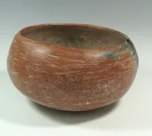 6" tall Casas Grandes redware bowl, solid with rim chip and probe hole. Arizona – Mexico border. |