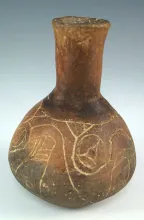 5" tall miniature Caddo water bottle with abstract engraving. Found in Cherokee Co., Texas. |